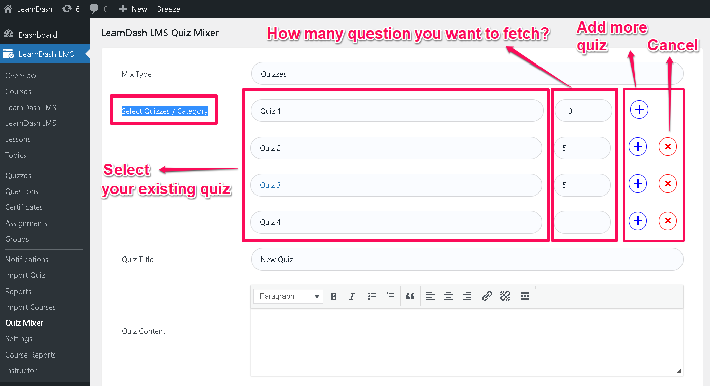 LearnDash not only lets you create the new quizzes by fetching the number of